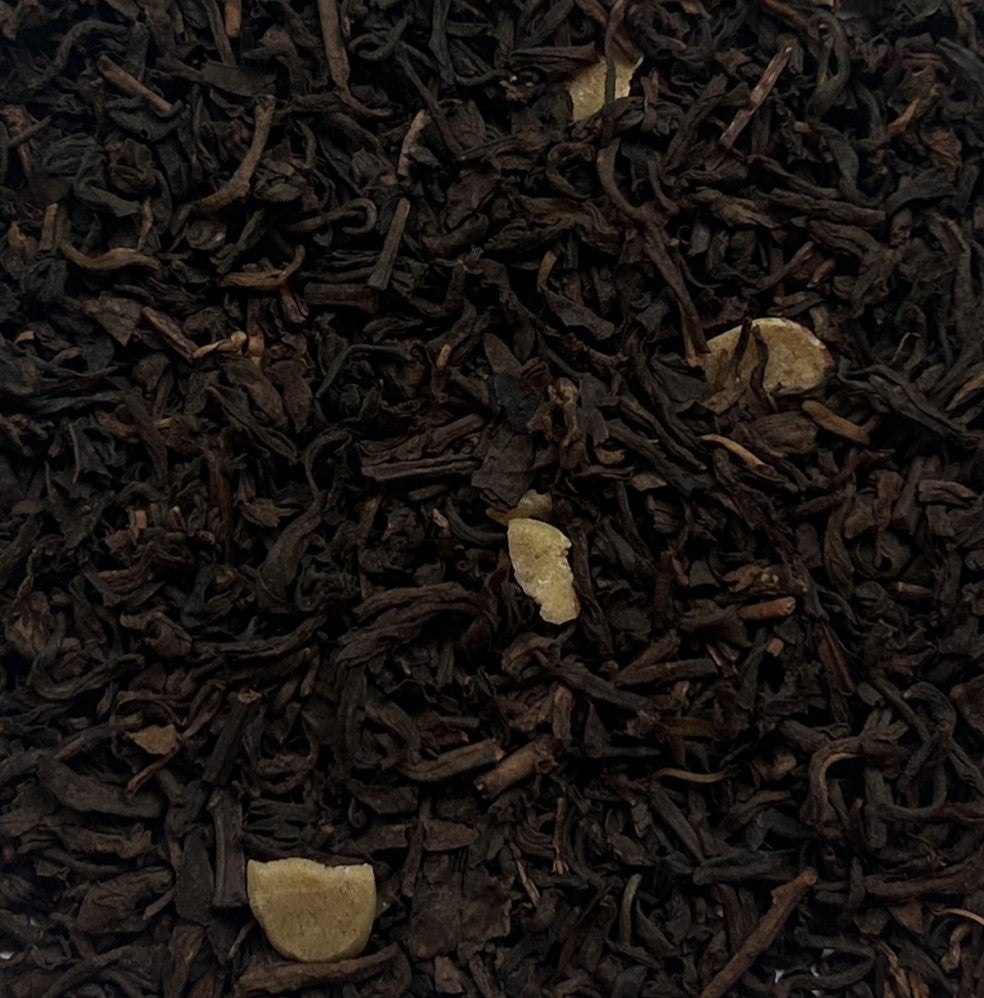 Ingredients: loose leaf Shou Pu-er from the Yunnan Province of China, almond pieces, natural flavors. *Contains nuts.